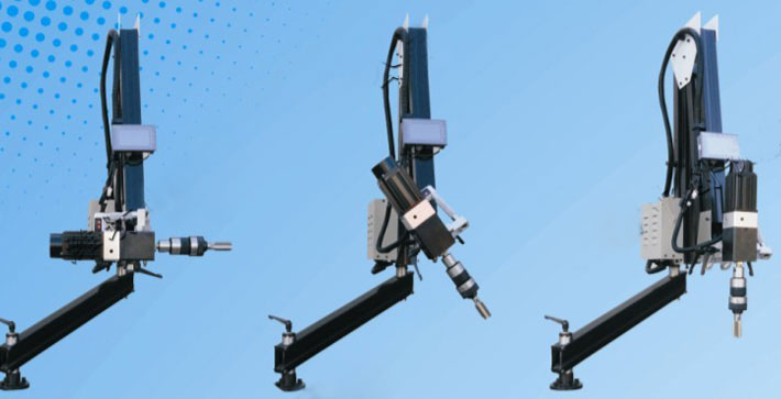 1微電腦控制,扭矩大小可調,盲孔不斷絲錐可根據攻絲的大小自行調節扭矩,加上扭力夾頭過載保護,雙重保護,不斷絲錐;主軸在半徑1200/2000MM內任意移動。